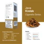 Rasa: Java Kretek Karakter tembakaow aromatik yang kuat namun tetap soft di tenggorokan